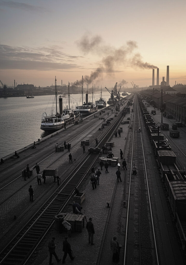 El transporte hasta la llegada del barco de vapor constituía un simple instrumento del comercio; el barco pertenecía por lo común al propietario de la mercancía que llevaba en sus bodegas y su arribo a un puerto determinado tenía por objeto y se prolongaba hasta tanto el cargamento estuviese transferido. El transporte no constituía un objeto habitual de comercio sino un instrumento que integraba el intercambio de mercancías. La aplicación de la máquina de vapor y el conjunto de mejoras que experimentó el navío a causa del progreso de la metalurgia, llevó sus dimensiones y por lo tanto su costo a límites que provocaron la separación del transporte, transformándolo en una mercancía; esta última característica tuvo por supuesto una influencia inmediata en la técnica del trabajo portuario y desde luego en la estructura de los puertos.